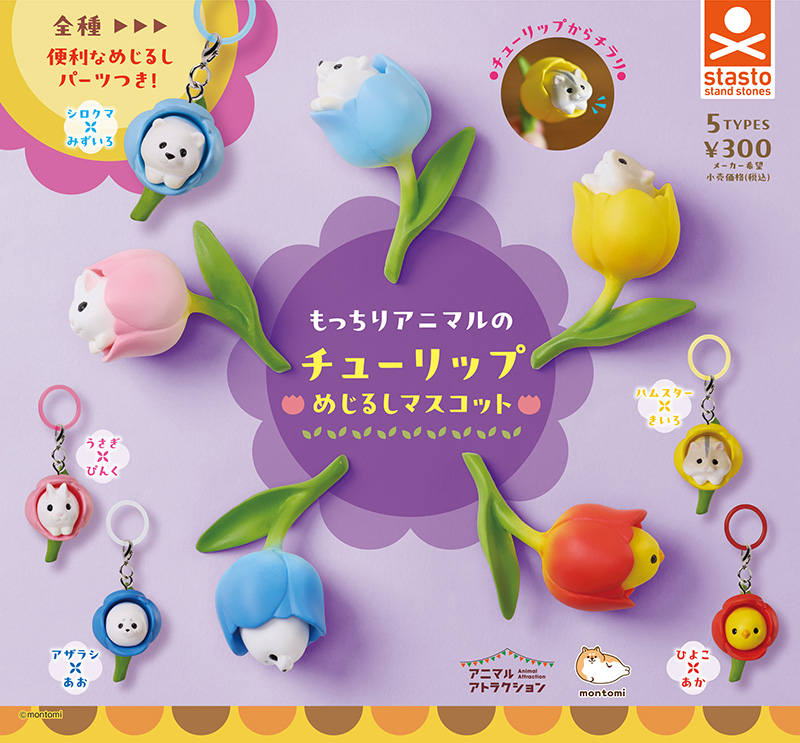 2026年04月発売もっちりアニマルのチューリップめじるしチャーム大好評の造形師もんとみコラボシリーズ新作です!人気の「めじるし」仕様で登場です。カラフルなチューリッ …